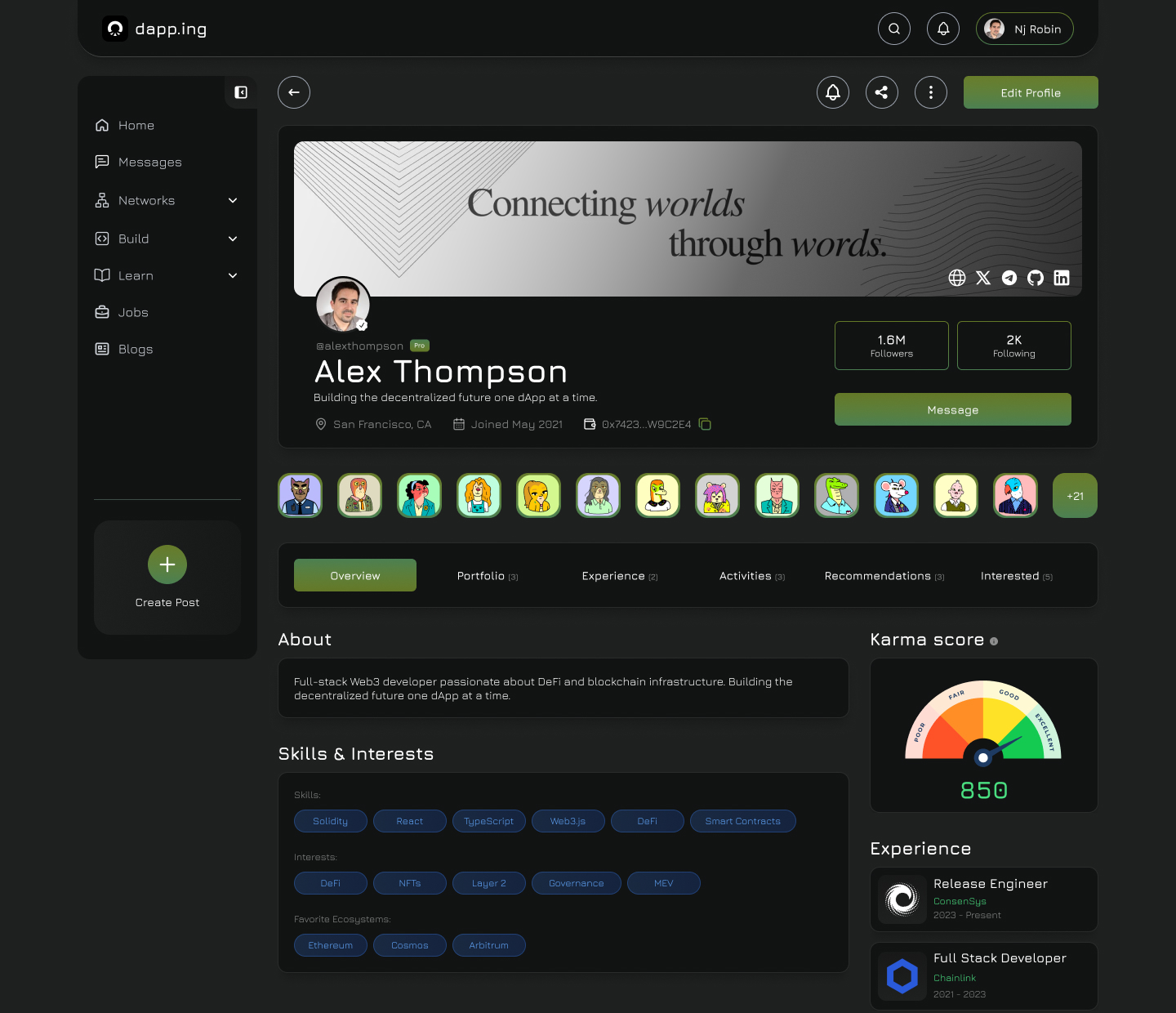 Showcase your profile, find opportunities, and connect with builders and companies across every chain.